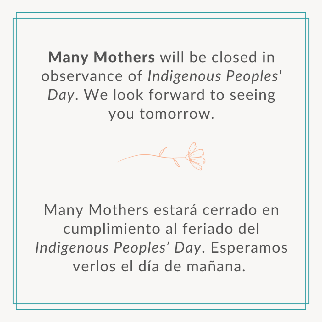 Any unexpected delays or closures will be shared on Facebook @manymothers and Instagram @manymothers.