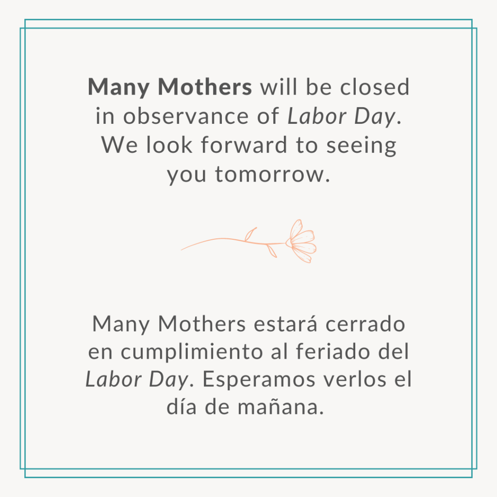 Any unexpected delays or closures will be shared on Facebook @manymothers and Instagram @manymothers.