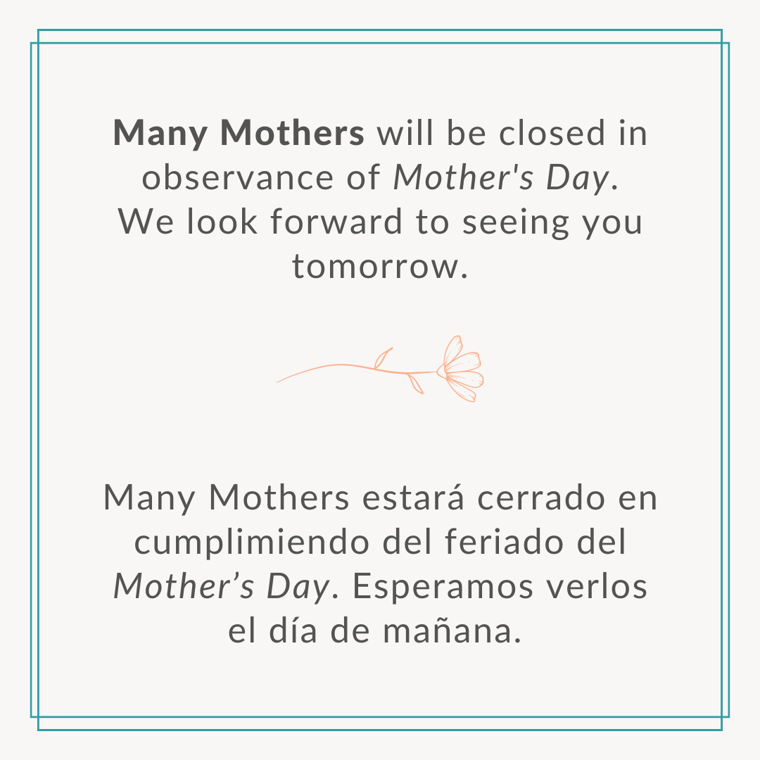 Any unexpected delays or closures will be shared on Facebook @manymothers and Instagram @manymothers.